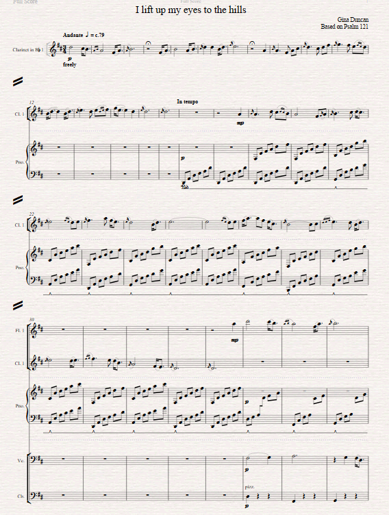 Gina regularly composes, with a particular focus on hymns for worship. She works with friends and church members who produce the words. To date, she has written over a dozen hymns and some of these are used regularly at her church, Torphichen Kirk. They have also been showcased several times at a special Praise Evening as part of the annual Bathgate Music Festival, at the Heart & Soul event in Edinburgh, and in occasional services at other churches.